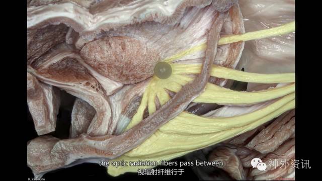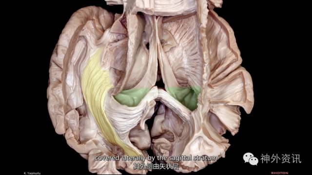 枕叶投射纤维(occipital projection fibers——矢状层saggital stratum):枕桥纤维(occipitopontine fibers)、枕丘纤维(occipitothalamic fibers——视辐射optic radiation)