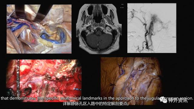 颈静脉孔区位置深在且富含重要神经血管结构,因此该部位的手术向来是颅底外科中最复杂的领域,也是神经外科、耳鼻喉科、颌面外科等多学科交叉的范畴。病变的性质和累及的范围是选择手术入路的决定性因素。该区域的手术入路大致分为:后方入路(乙状窦后-远外侧-经髁入路)、外侧入路(耳后经颞入路)、前外侧入路(耳前颞下-颞下窝入路)、前方入路(内镜下经鼻入路)。本集视频,由Rhoton教授的挚友,颈静脉孔区的神外大师级专家Jon Robertson主讲,其针对颈静脉球瘤,着眼每一个解剖标志和手术技巧,详细阐述这一区域最为常用的入路——耳后经颞入路。而其中或许存在一些不同于耳鼻喉科的理念和观点,也欢迎其他学科的同道们加入讨论。