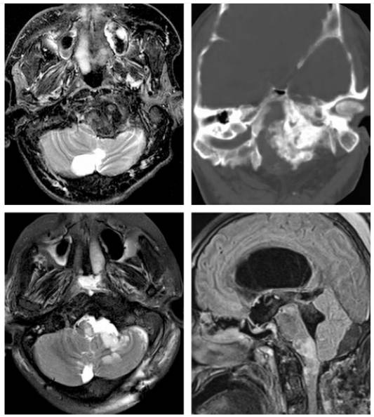 3、斜坡硬膜外病变,如脊索瘤、软骨肉瘤、转移瘤或者颈静脉球瘤(前两种肿瘤最好的入路是经鼻内镜入路)。