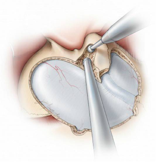 局部磨除岩锥便于显露下2/3的岩斜区及其临近的偏侧病变,如脑膜瘤。