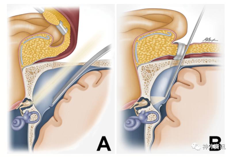 综上所述,内镜辅助下,对于颞叶脑膨出和鼓室盖缺损的修补有明显优势,脑组织牵拉相对减少,创伤更小。