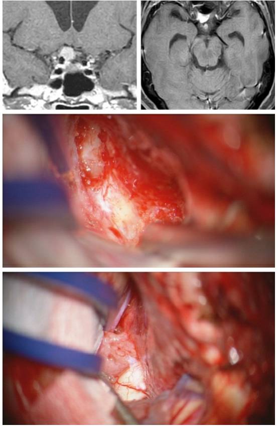 术前了解肿瘤对正常血管结构的影响,可以有效避免术中灾难性的血管损伤。此外,如果存在严重的颅底血管包绕,则需要做好次全切除的准备,因为在肿瘤切除的过程中,小的ICA穿支动脉及其容易受到损伤。MRI可以为此提供必要的参考。