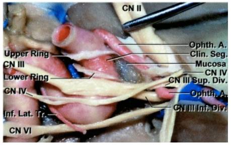 除了骨性解剖结构,熟悉床突旁血管和视器的解剖,对于处理蝶骨嵴内侧脑膜瘤也是非常重要的。