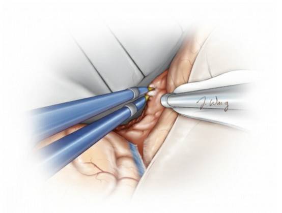 2. 早期离断肿瘤血供可以减少显微手术关键步骤时的出血,保持术野清晰。避免在内侧的神经血管结构周围使用双极电凝。