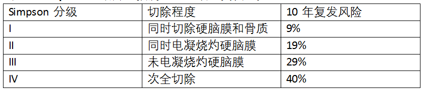 表1:Simpson分级用于预测术后脑膜瘤复发风险