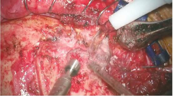 图13. 将所有肿瘤浸润组织整块抬起,全切肿瘤。