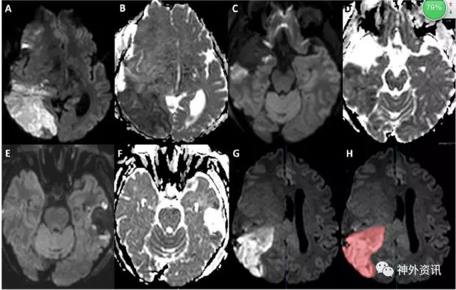 图1. 脑肿瘤切除术后患者的MRI成像显示脑梗死体积。