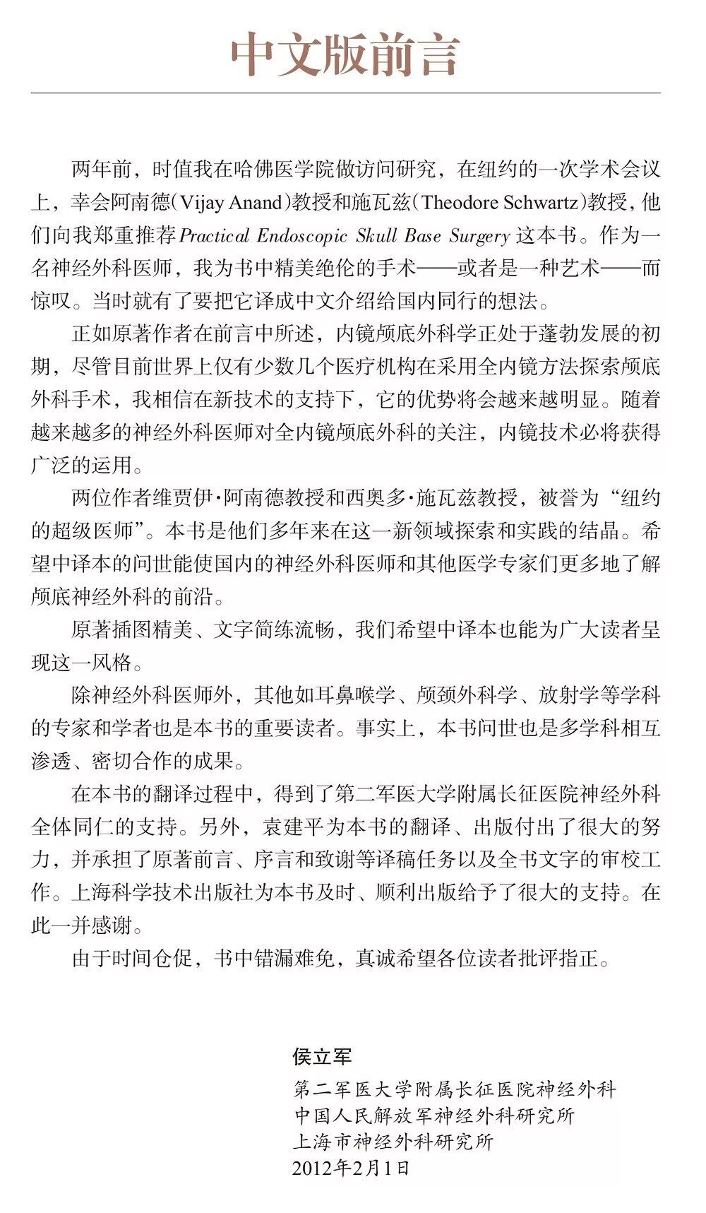 由侯立军教授团队主译的《实用内镜颅底外科学》,面世3年以来深受大家喜爱。