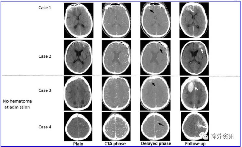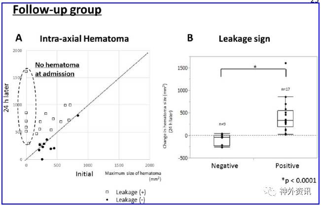 图3. 动态观察患者“渗漏征”与脑内血肿进展的关系。
