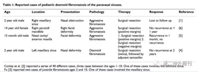 图7. 既往文献报道的鼻窦旁韧带样纤维瘤的总结