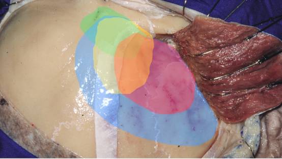 图5. 面神经额支位置如图所示,沿脂肪垫的浅层筋膜走行。
