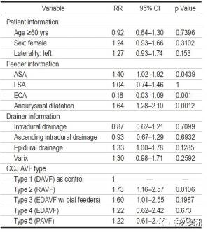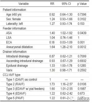 表2. 影响CCJ 区AVF出血的危险因素分析。