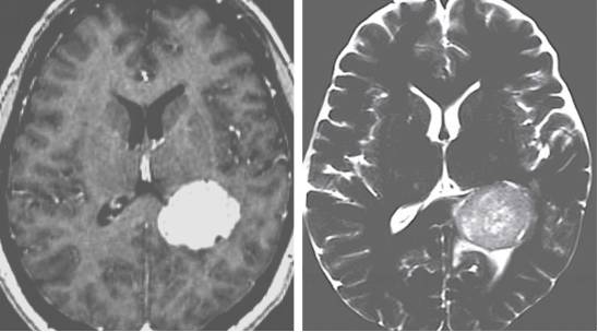 这类起源于松果体实质的WHO I型病灶,位于松果体区,占颅内肿瘤的1%。大部分为良性、非常缓慢生长的病灶,极少出现恶性进展。