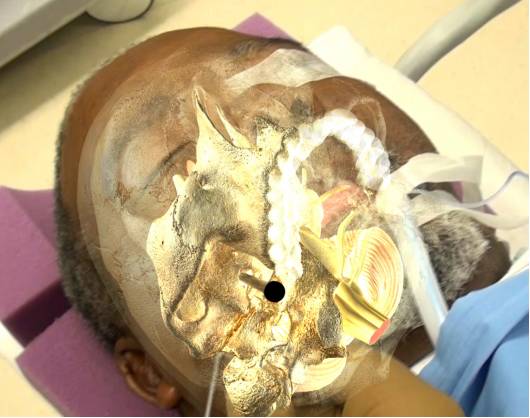 图8. 通过将颅骨与患者的图片融合可见穿刺骨孔中参考的那些骨性解剖标志。