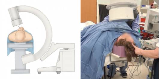 患者取仰卧位,颈部旋转15至20度,头部置于空心枕头上(甜甜圈枕)。头颈部伸展过度会使手术医师偏离骨孔穿刺的标志。全身麻醉适用于球囊压迫和甘油溶液阻断神经根,因为这两种阻断方式并不像射频毁损神经根那样需要患者清醒或配合。气管导管需要固定于患侧面部的对侧以保证术者的手在患者口内有足够的活动空间。