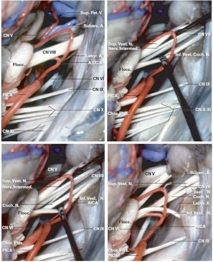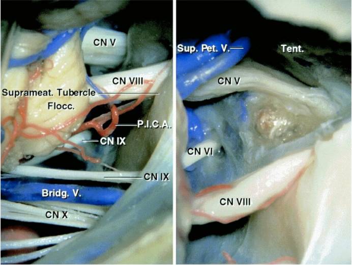 术者必须详尽地理解后颅窝颅神经、小脑前下动脉和小脑后下动脉的相关解剖。