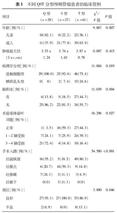 探讨不同QST分型颅咽管瘤患者的临床特点以及QST分型对手术的指导作用。