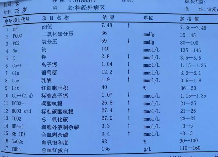 血气分析明显异常,氧分压59mmHg。