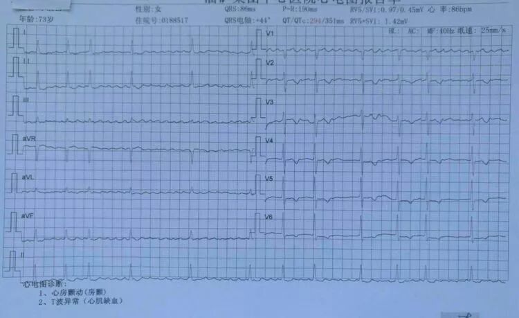 心电图复查,仍有房颤但心率正常。