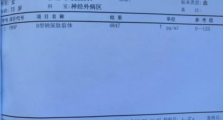 B型纳尿肽前体显著增高4847pg/ml。