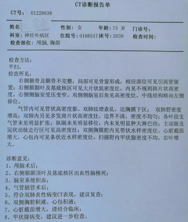 一周后患者意识逐渐恢复,生命体证平稳。