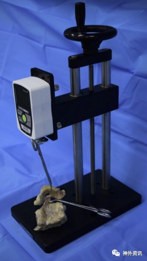 分别将骨夹夹牢齿状突中线和枕骨髁,下端固定于桌面,上端固定于拉力测验机钩环上(图2)。