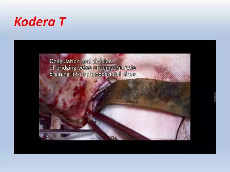 4. 应在术前对Labbe静脉的位置和走形进行预判。调整硬膜切开和硬膜外抬起颞叶的位置以保护这一至关重要的静脉结构。