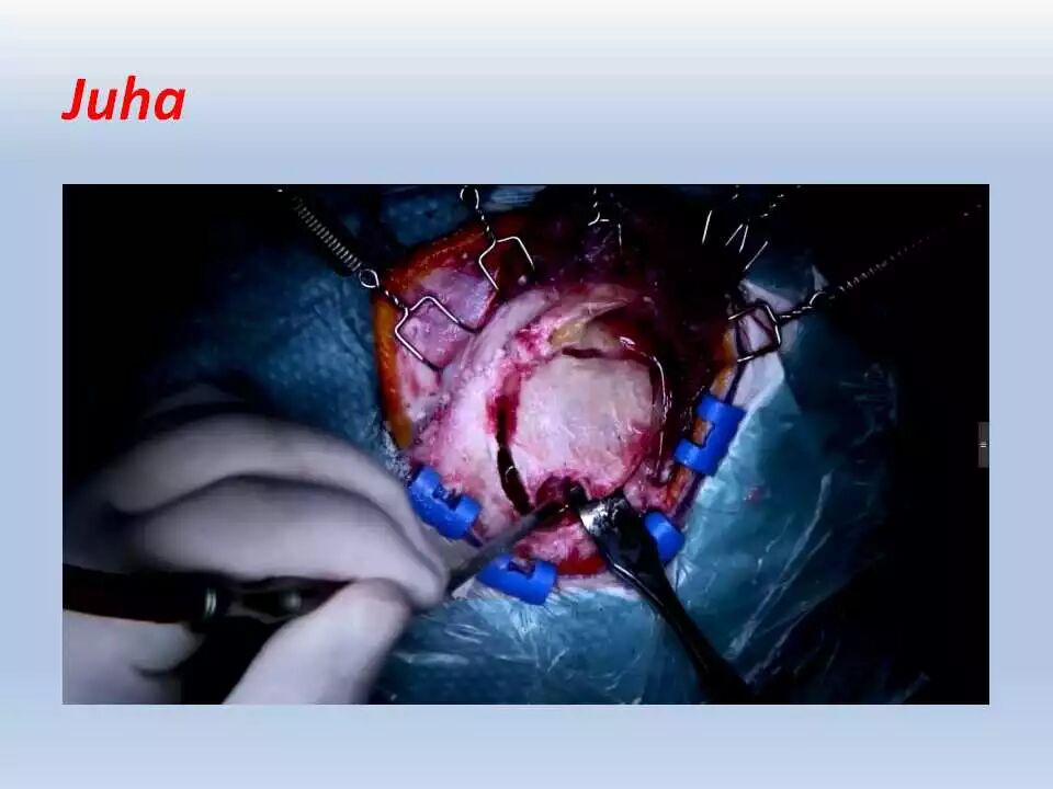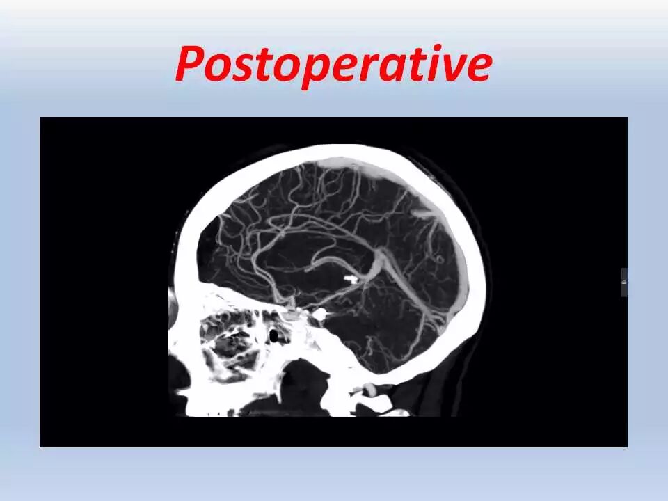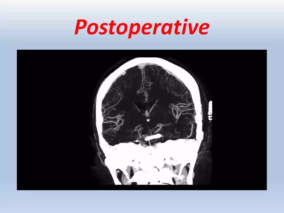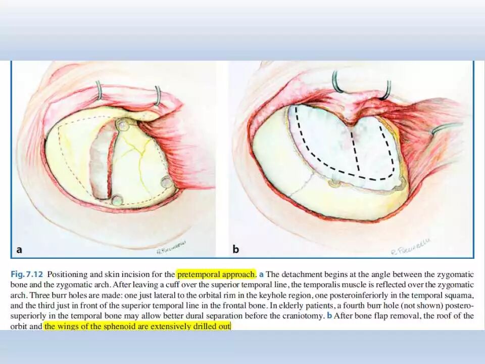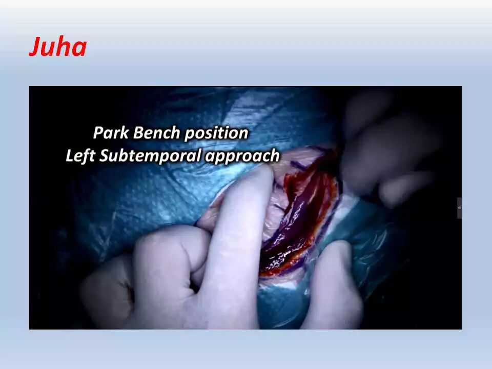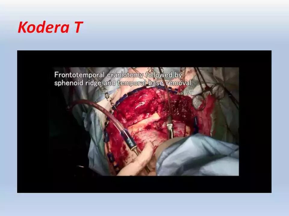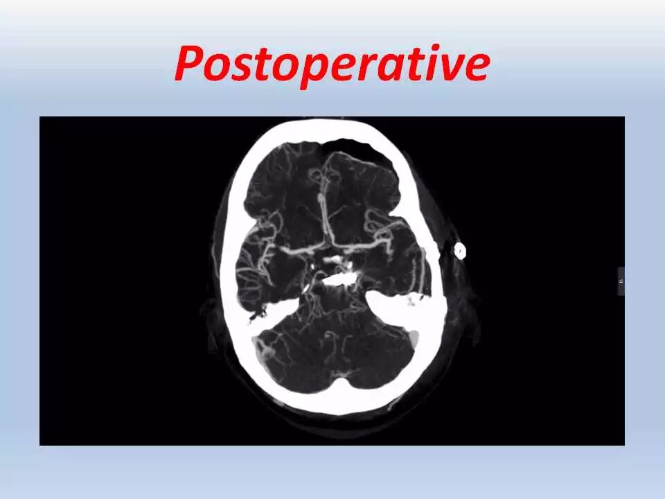 术后,将患者送往ICU行神经功能和血压监控、以及控制疼痛。频繁和仔细的神经功能检查非常重要,颞叶牵拉受损和静脉回流障碍均可引起颞叶血肿的发生,而颞叶血肿会很快引起脑干受压而危及生命。