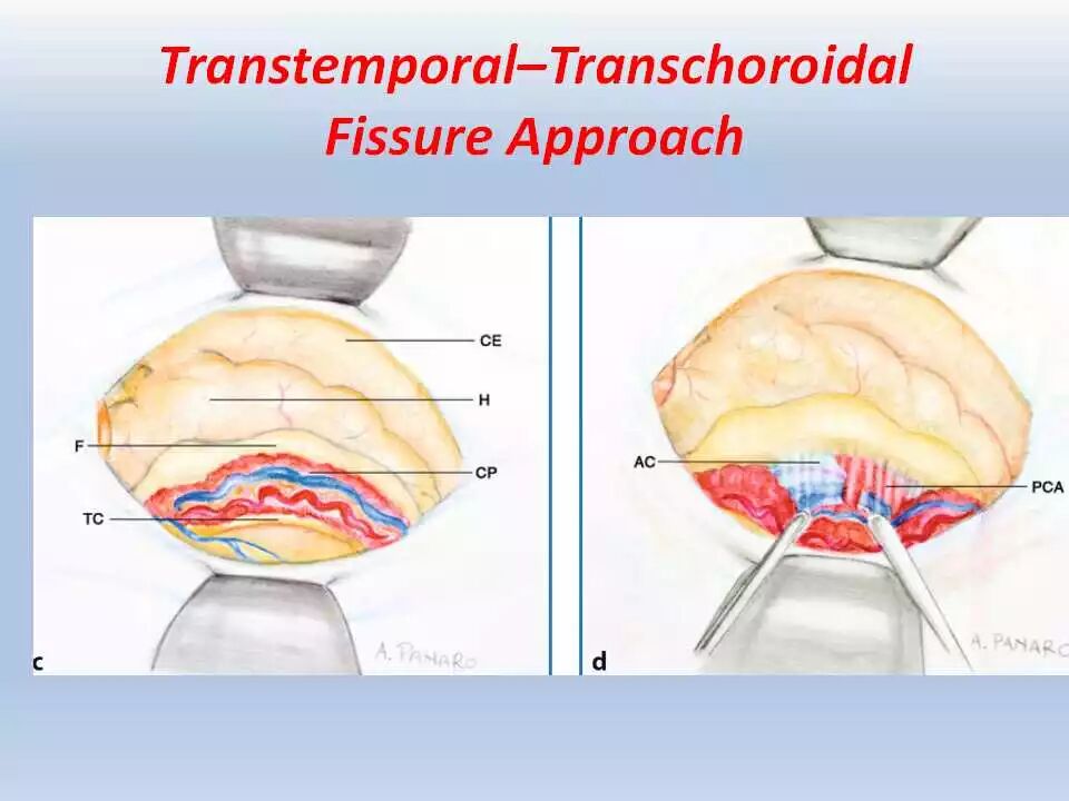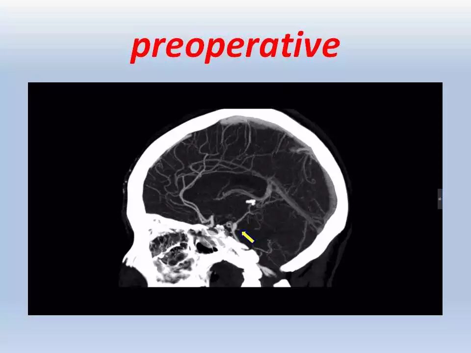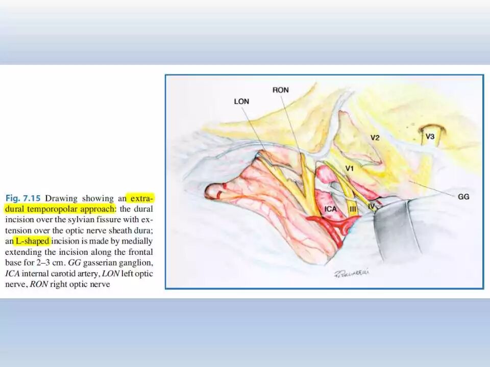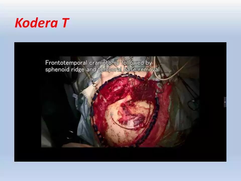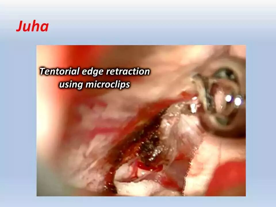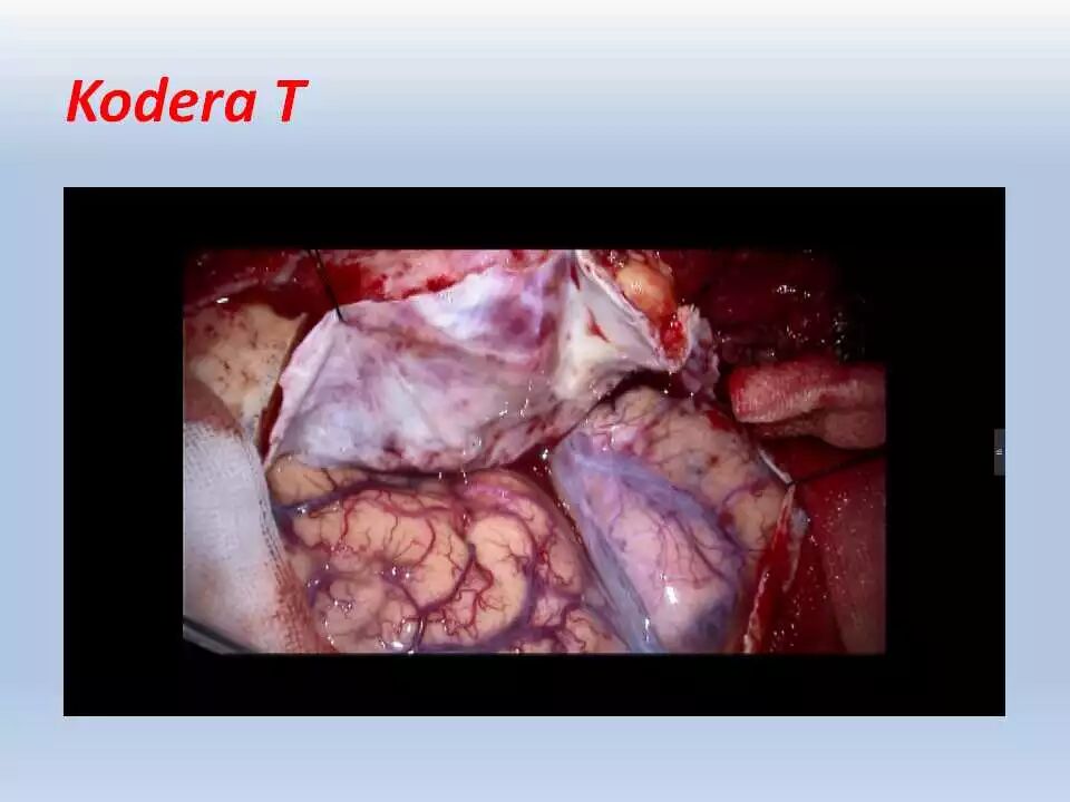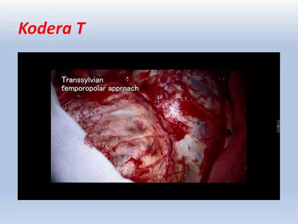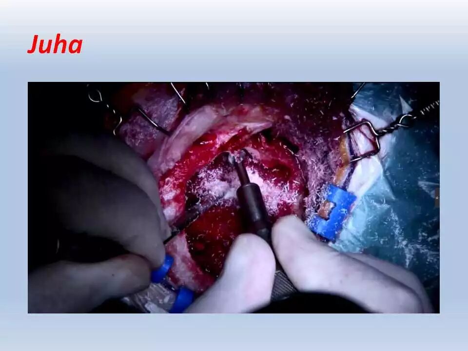 术后,将患者送往ICU行神经功能和血压监控、以及控制疼痛。频繁和仔细的神经功能检查非常重要,颞叶牵拉受损和静脉回流障碍均可引起颞叶血肿的发生,而颞叶血肿会很快引起脑干受压而危及生命。