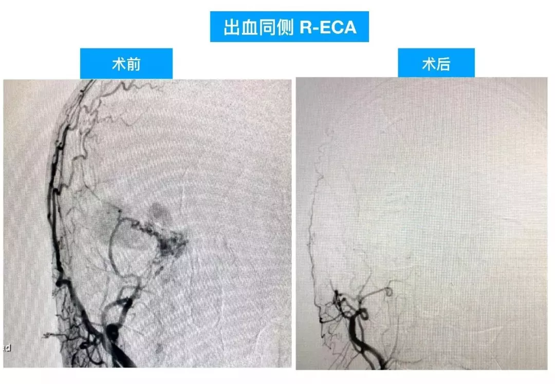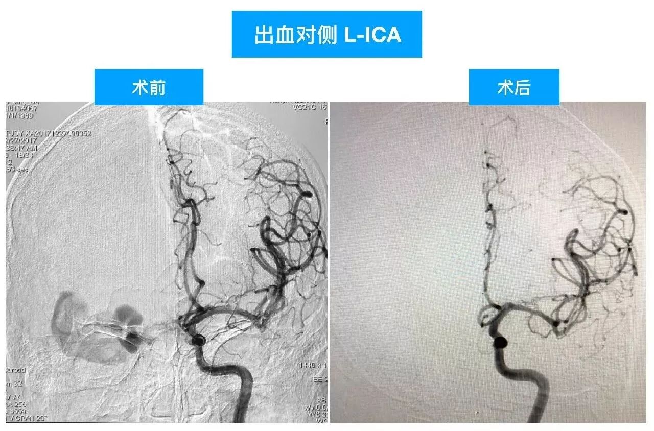 (2)DAVF即使术前很严重,及时闭塞DAVF,清除血肿,常常有好的预后;此例患者术前双侧瞳孔散大,术后回复超乎常规;