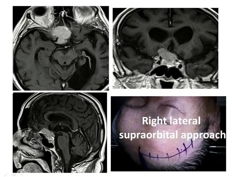 Juha大师,运用此入路成功开展对嗅沟脑膜瘤、鞍结节脑膜瘤、颅咽管瘤、床突旁动脉瘤、前交通动脉瘤等疾病的手术治疗。