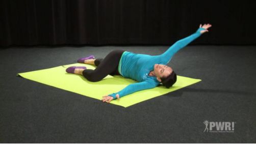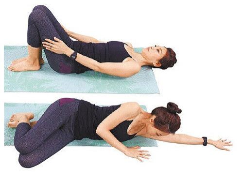 1. 左侧卧位,4字腿,双膝紧贴地面,保持下半身不动,左臂枕位或紧贴地面,缓慢向右转身,直到右臂触碰地面,保持5~10秒,反复4~5次,换右侧卧位重复。