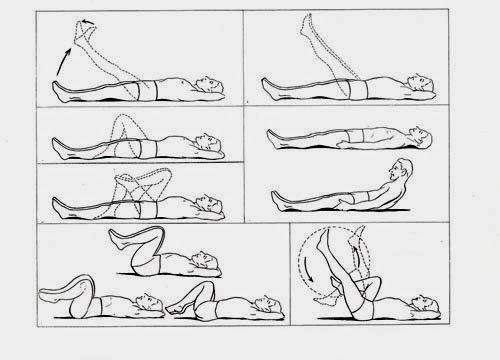 缓慢恢复平躺姿势,每个周期循环3~4次;