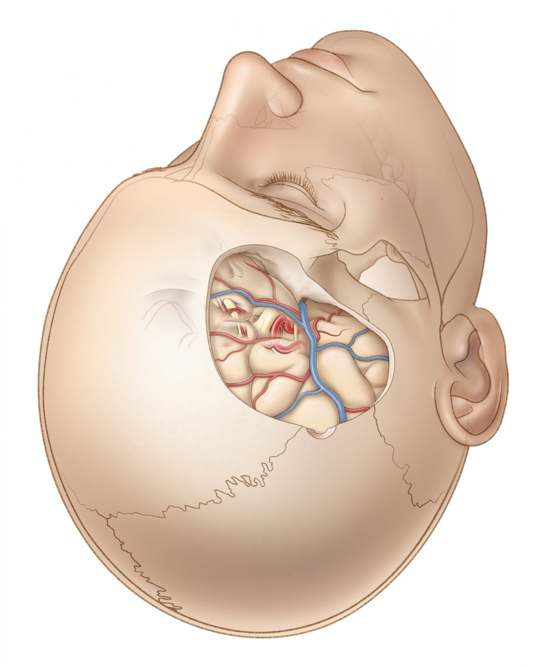 通过恰当的手术入路和病人体位设计以最大程度的减少硬膜下路径分离操作时无关的脑损伤和牵拉。重力牵拉, 扩大截骨,松弛脑组织, 广泛切开蛛网膜,以及最重要的——有策略的运用动态牵拉——和在切除病变时始终注意对正常脑组织的保护是成功的手术方案的关键因素。