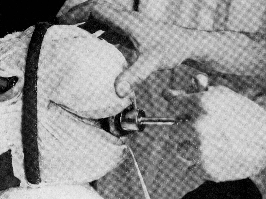 图1. 哈维.库欣演示使用环锯在额骨上缘开颅的方法。值得注意的是:他使用了止血带来控制头皮出血。