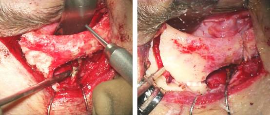 移除眶上缘显著扩大了至前颅底的通路。这种截骨术改善了由下向上的手术操作角度。