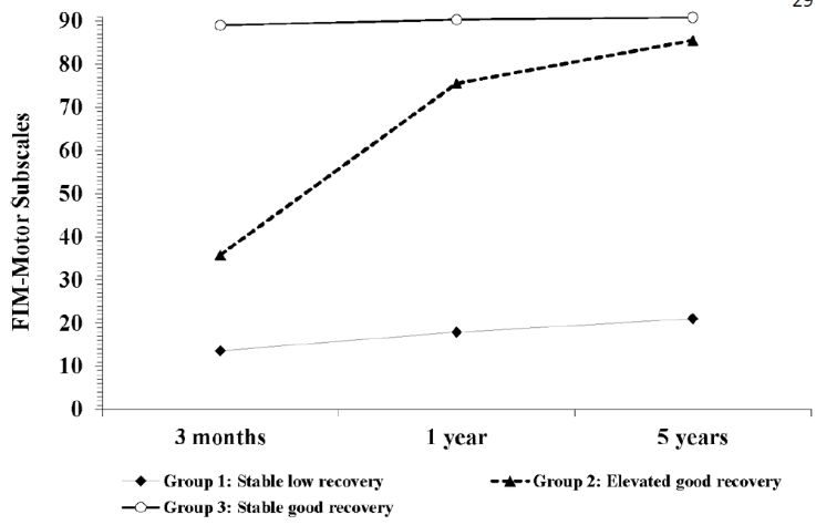 图1. 使用FIM-M测定的中重度TBI患者三种恢复轨迹。