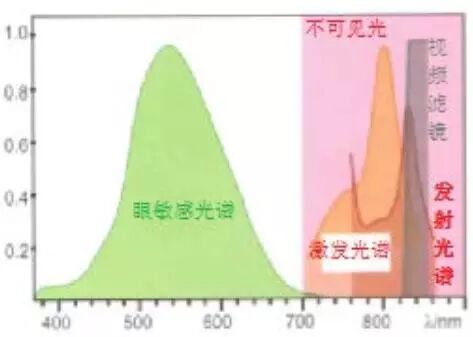图7. 显示吲哚菁绿(ICG)的吸收波长和荧光波长都在近红外区域