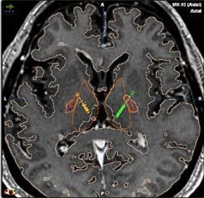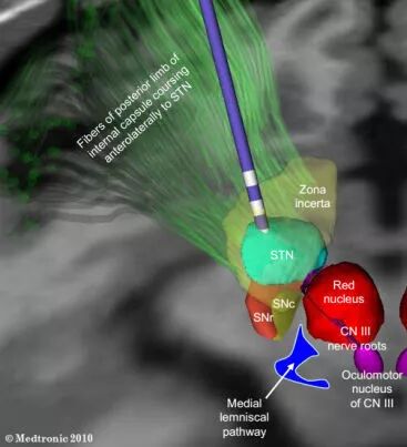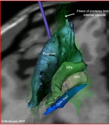 DBS手术是一个要求非常精准的手术,术中需要正好定位到相对应的大脑核团。在美国的时候美国的医师更多的选择GPI核团,国内选择STN核团的更多。
