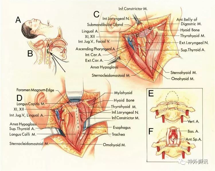 侧方入路,突破岩骨之障碍,抵达枕大孔,不是本篇的重点。