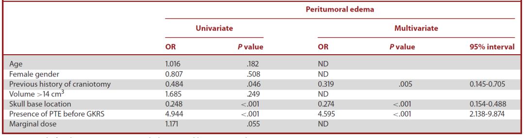 表2. GKRS治疗后发生PTE的多因素分析结果。