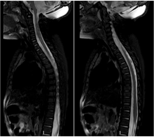 图6. 患儿全脊髓增强MR,未见明显异常信号。
