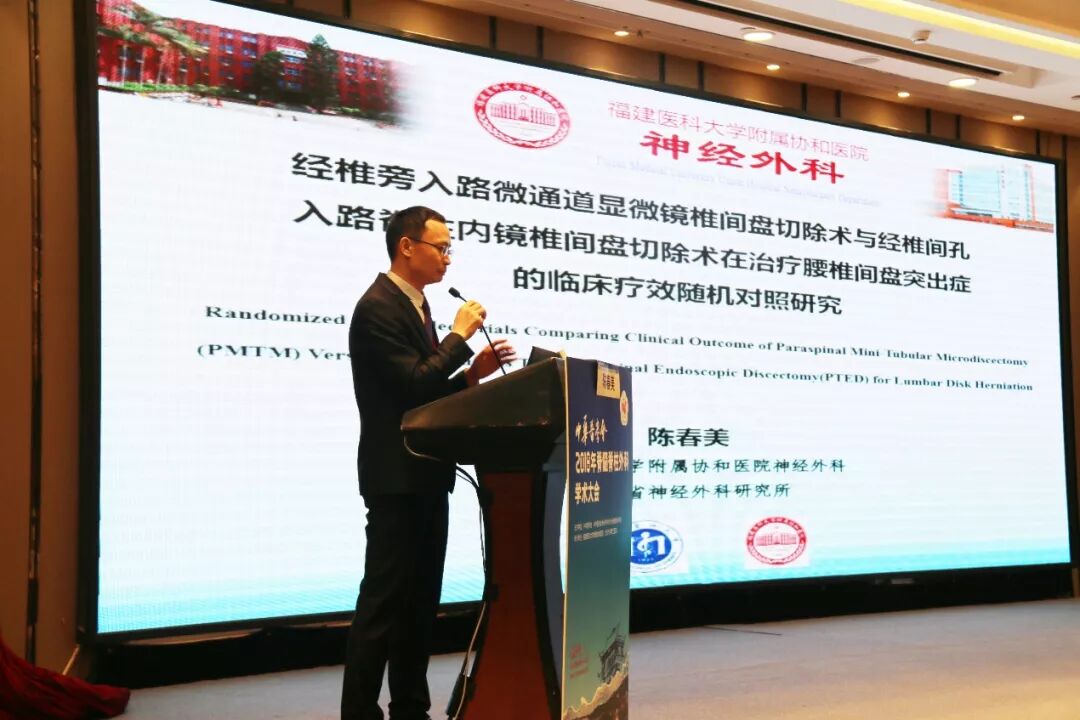 福建医科大学附属协和医院陈春美教授授课:《多中心RCT研究:经椎旁入路微通道显微镜椎间盘切除术(PMTM)与椎间孔入路脊柱内镜椎间盘切除术(PTED)在治疗腰椎间盘突出症的临床疗效随机对照研究》