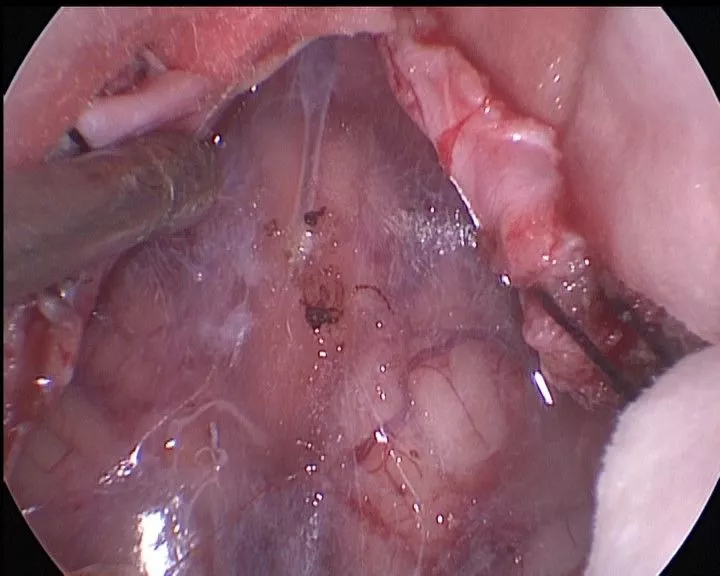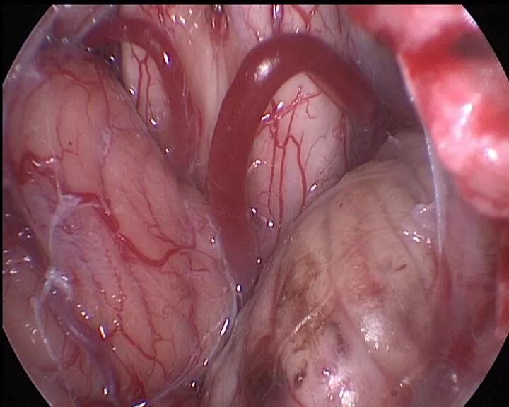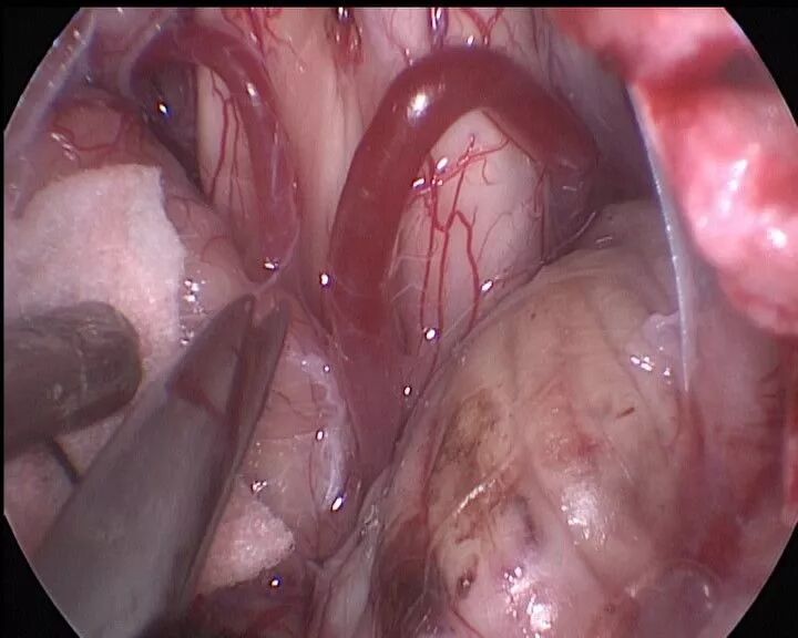 抬起小脑蚓,暴露并剪开蛛网膜小梁