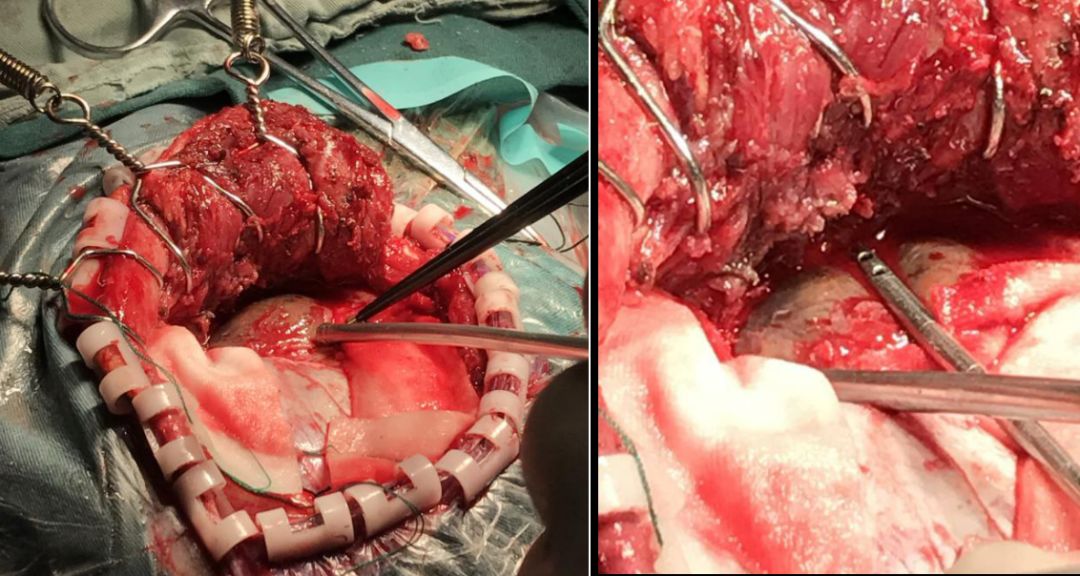 图8. 2018-2-14行“右侧翼点入路,脑膜中动脉假性动脉瘤切除术”,术中见假性动脉瘤包膜形成。