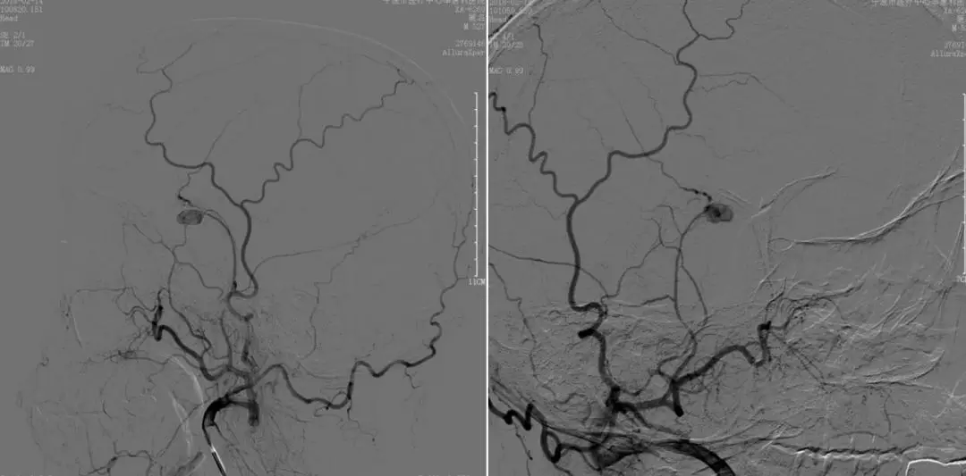 图7. 2018-2-14 DSA提示右侧脑膜中动脉假性动脉瘤。