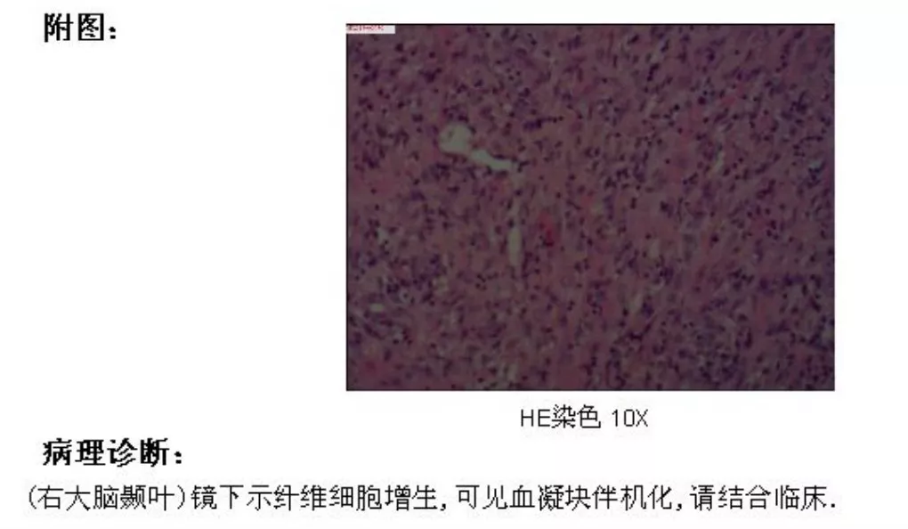 图9. 病理回报:镜下纤维细胞增生,可见血凝块伴机化。