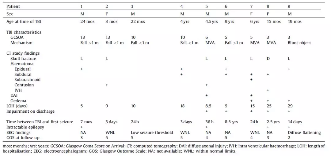 作者指出,中、重度TBI患儿伤后远期癫痫发生风险较高。除颅骨骨折外,CT图像上显示的脑损伤病变似乎可提升PTE的风险。