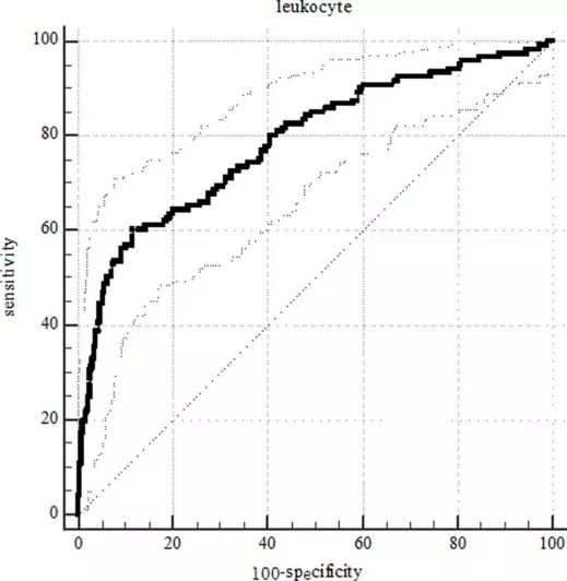 图1. 外周血白细胞数预测脑动脉瘤破裂的不良预后ROC曲线。
