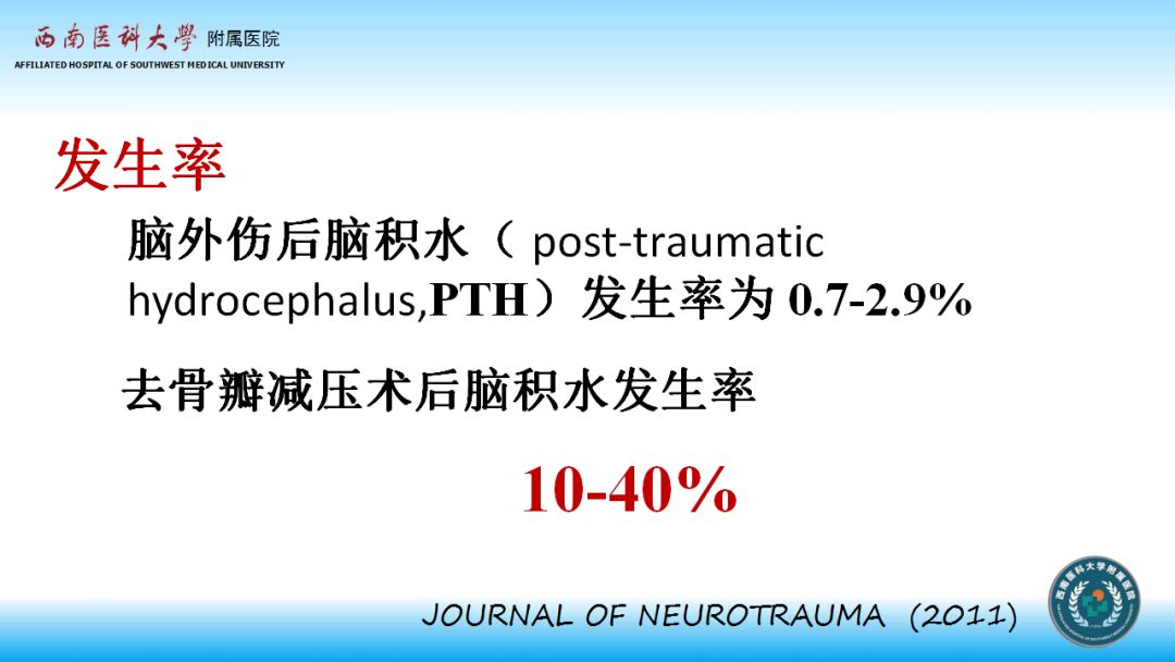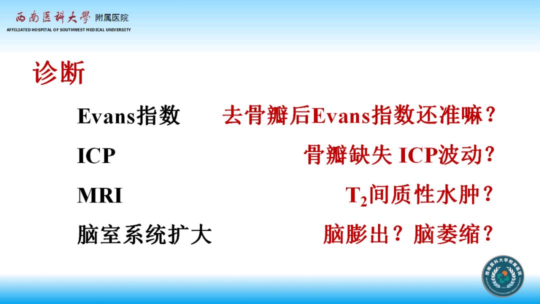 1、创伤后脑积水诊断标准很明确,对于去骨瓣减压病人可结合改良的侧脑室额角指数来诊断。